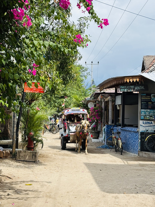 Esta isla de Indonesia no tiene coches ni motos, así que para llegar a tu hotel (en el caso de que lo necesites), hay disponibles carros de caballos. Ten en cuenta que son bastante caros.
