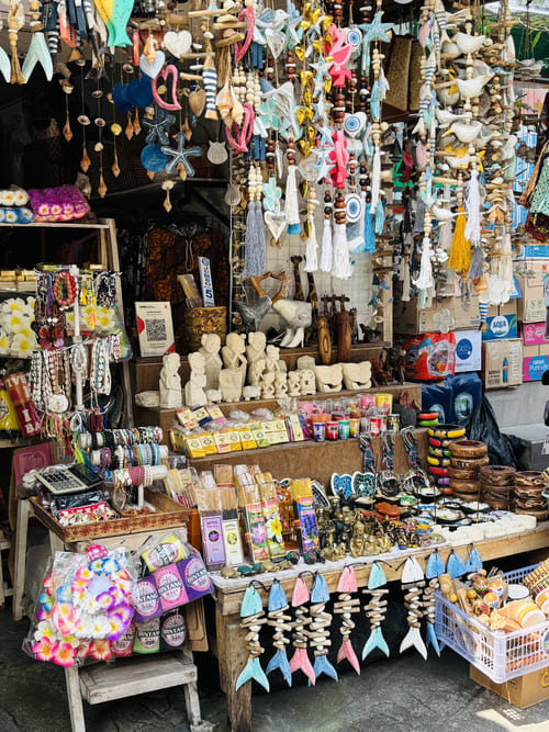 Aquí venden toda la artesanía que quieras, un montón de ropa de imitación, bolsos de playa, souvenirs, pinturas tradicionales, joyería, telas batik… Vamos, de todo.