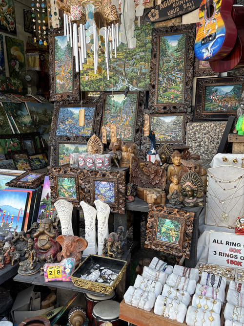 En este mercado de Ubud también encontrarás de todo: artesanía balinesa, tejidos batik preciosos, esculturas de madera súper bonitas, plata, pinturas tradicionales o souvenirs de Bali.