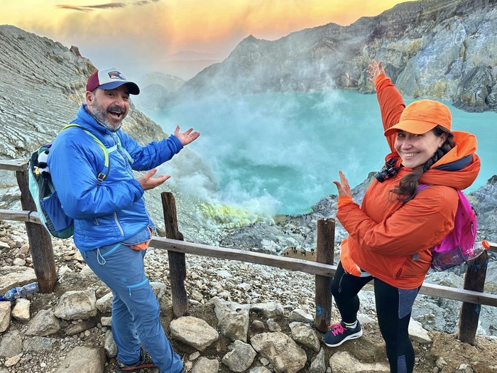 Luis y Rosa en el cráter del volcán Bromo, Indonesia