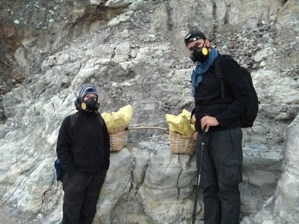 Una cosa que se te queda grabada, es ver cómo la gente local recoge la roca de azufre en las proximidades del lago y carga con ella en sus espaldas.