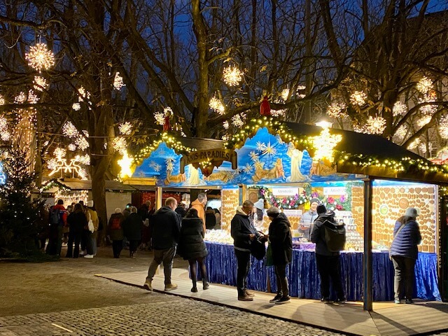 En este mercado de Navidad de Basilea venden todo tipo de detalles navideños, pero también es un sitio genial donde tomar algo, ya que muchos de estos puestos son de comida. Allí puedes comer salchichas, pan de especias, gofres… y por supuesto, beber vino caliente.