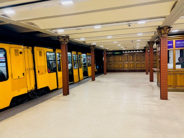 - Metro. Esta es la mejor opción para moverse de un punto a otro de Budapest. Transporte rápido y económico, pero aquí es importante que sepas que el acceso no tiene tornos de entrada. Para entrar al metro tienes que comprar un ticket en las máquinas de las estaciones y validarlo. Esto es imprescindible si no quieres que te multen. Y ojo, porque verás un montón de revisores que están súper pendientes de los turistas que no pagan su billete.