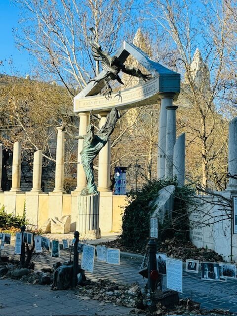 Junto a él verás una placa con el nombre de Raoul Wallenberg, un diplomático sueco que salvó a más de 30.000 judíos de los campos de concentración, emitiendo salvoconductos.