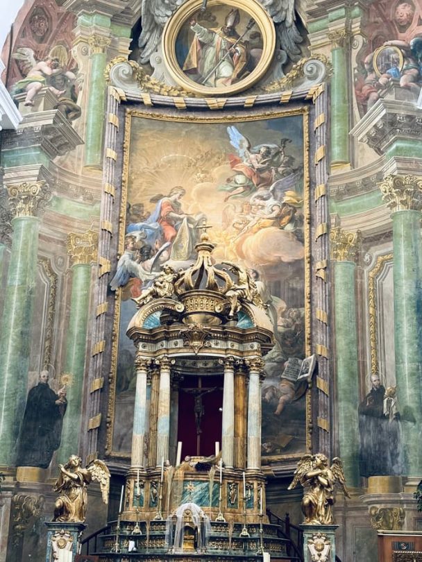 Hemos hablado de ello en el punto anterior, pero repetimos la recomendación para que lo te lo pierdas. Un retablo fingido, pintado al fresco como si fuera de arquitectura. ¡¡Alucinante!!