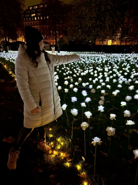Ever After Garden es un jardín de rosas iluminadas que recuerda a los amigos y familiares perdidos por el cáncer. La entrada es gratuita, aunque con una donación sugerida de 10 libras que ayuda a la investigación.