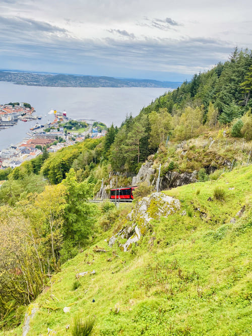 ¿Merece la pena subir a Fløyen? Rotundamente sí, porque solo se tardan seis minutos hasta la cumbre y la panorámica del fiordo desde su mirador es brutal.