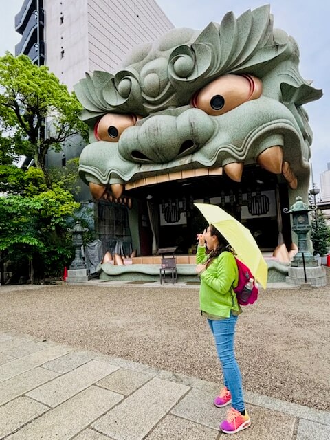 El Santuario Yasaka Namba es famoso por su imagen con forma de león (aunque a nosotros nos parezca un dragón), algo único, teniendo en cuenta el resto de santuarios sintoístas que hemos visitado en Japón.
