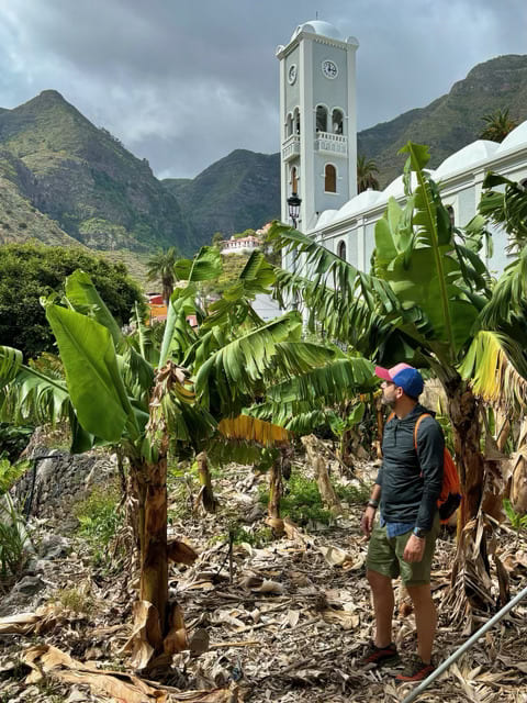 Pero lo mejor es que desde aquí puedes disfrutar de unas vistas espectaculares del pueblo de Hermigua, de los campos de plátanos y de las terrazas verdes que se extienden hasta donde alcanza la vista. Así que no olvides la cámara, porque este rincón es otro lugar perfecto para hacer fotos bonitas en un recorrido de un día por La Gomera.