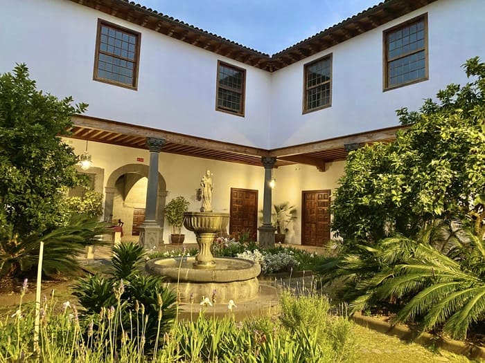 Además de su fachada, te recomendamos entrar para ver su patio, un ejemplo perfecto de arquitectura canaria tradicional, con columnas de piedra y madera, una fuente central y galerías que servían para ventilar y dar luz a la casa. Apúntalo porque es uno de los sitios más bonitos que ver en San Cristobal de La Laguna.