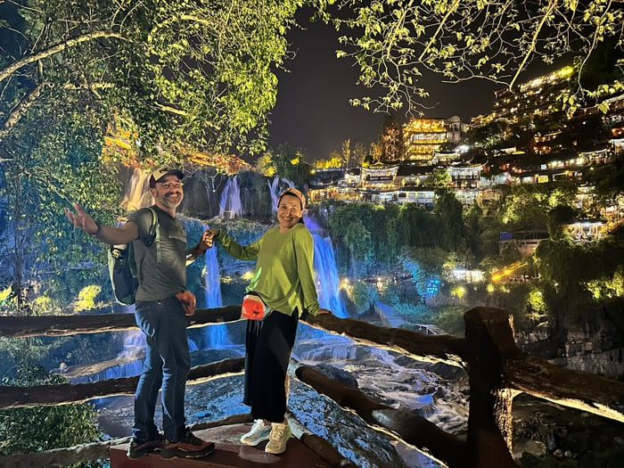 Un sitio de ocio que puedes visitar en Zhangjiajie después de las 7 de la tarde, porque literalmente se transforma con un espectáculo de luces brutal.